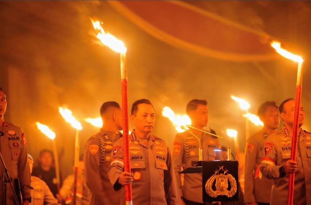 Renungan yang berlangsung dalam suasana gelap dan diterangi ribuan obor itu diikuti oleh Pejabat Utama (PJU) Mabes Polri, para Kapolda, para Karo Ops, serta Kapolres dari seluruh Indonesia, total lebih dari 600 peserta sesuai susunan formasi resmi kegiatan.