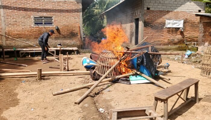 Di lokasi, petugas menemukan sejumlah sarana yang digunakan dalam perjudian sabung ayam tersebut. Beberapa barang bukti seperti arena sabung, karpet dasar, dan tujuh sangkar ayam langsung dimusnahkan di tempat.