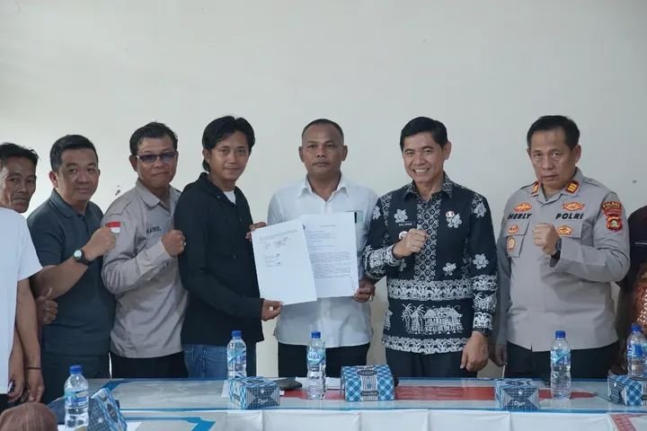 Hasil rapat dituangkan dalam dokumen kesepakatan resmi dan disepakati seluruh pihak. Foto bersama para peserta mediasi menjadi simbol bahwa penyelesaian masalah ini dilakukan secara terbuka, akuntabel, dan berbasis kepentingan warga.