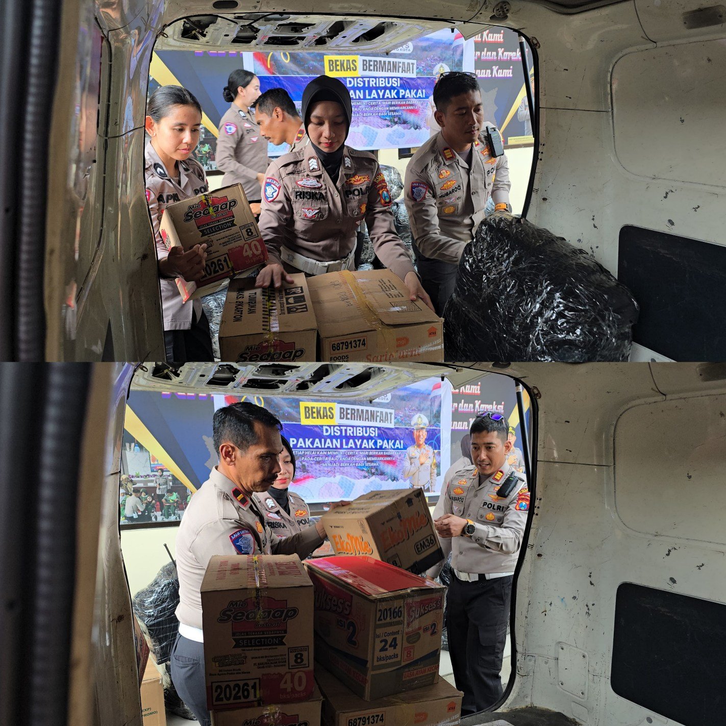 Wujud kepedulian Bencana di Aceh, Sumatera Utara dan Sumatera Barat, Polres Mojokerto Kota Polda Jatim melalui Satuan Lalu Lintas (Satlantas) menyalurkan paket bantuan untuk para korban bencana, Senin (08/12/2025).