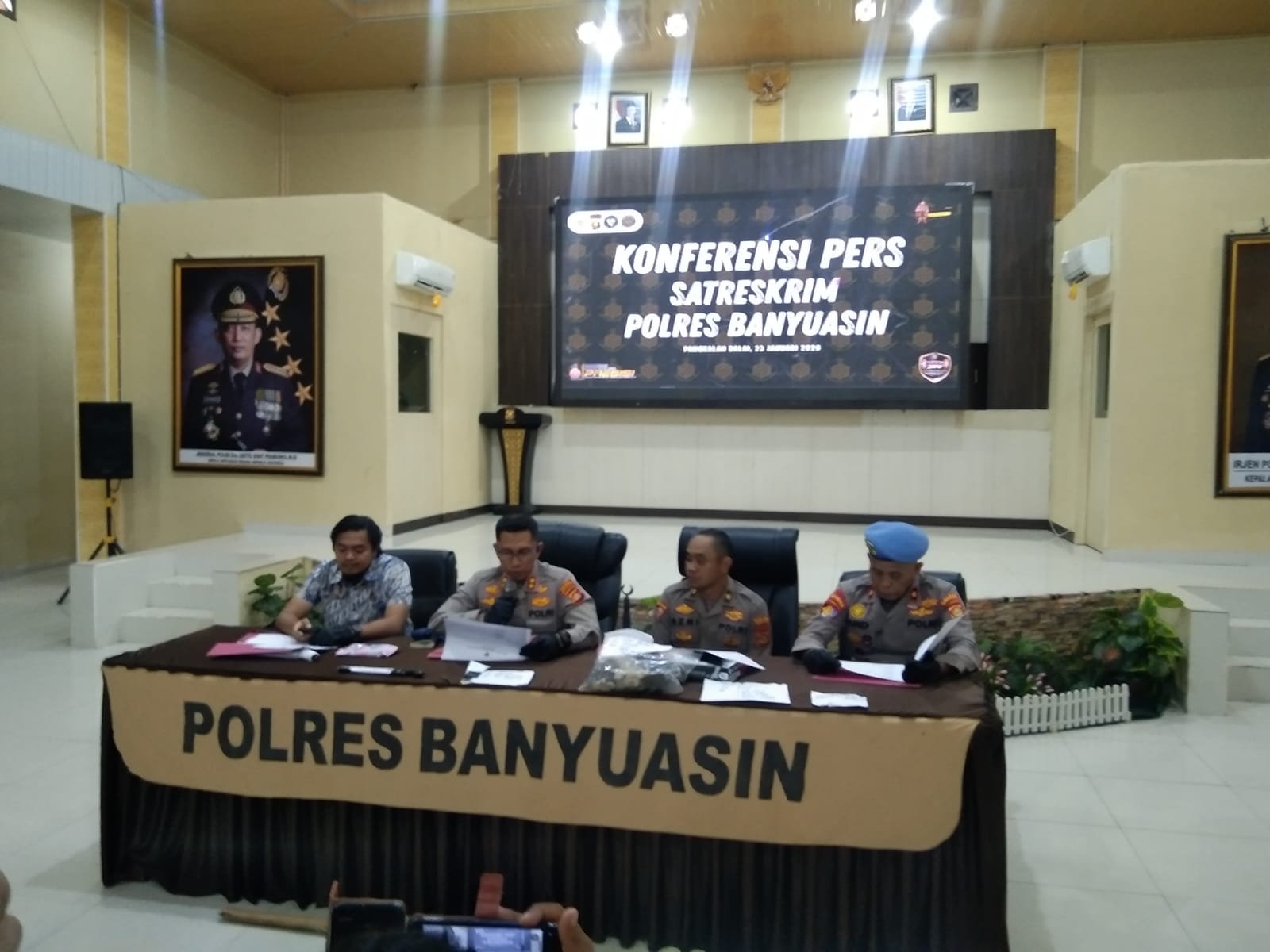 Kegiatan ini dihadiri Kapolres Banyuasin AKBP Risnan Aldino, S.IK., M.Si., Kasat Intelkam AKP Novidilhan, Kasat Reskrim AKP Muhammad Ilham, Plt Kasi Humas Iptu Abu Bakar, S.H., serta jajaran pejabat Polres Banyuasin.